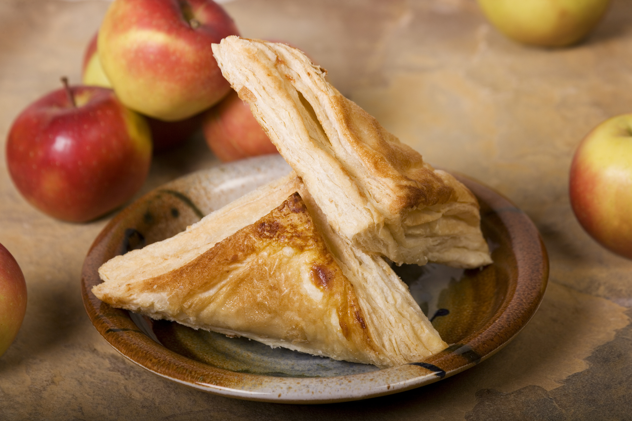 4. Cut puff pastry into 5x5-inch squares. Add a spoonful of apple filling to the center of each.